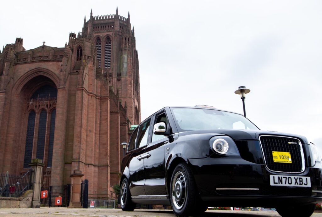 Comcab Liverpool outside Liverpool Cathedral